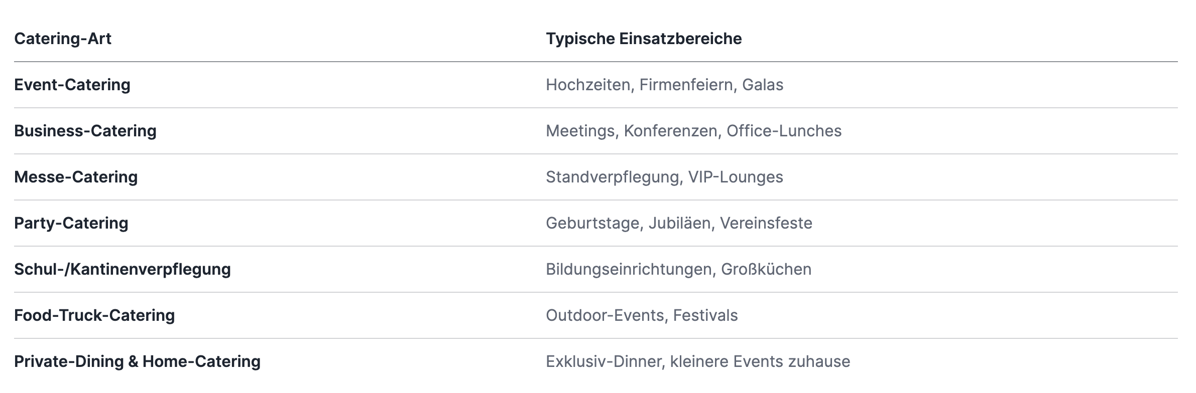Catering ist nicht gleich Catering – es gibt viele Unterformen, die jeweils auf unterschiedliche Bedürfnisse zugeschnitten sind.